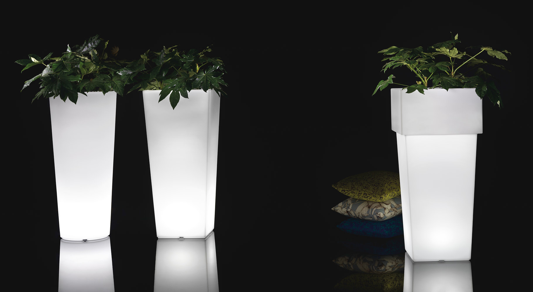 Ecléctico en la versión coloreada, escénico en el modo luminoso con luz LED blanca con cable, ideal para iluminación fija y continua, o RGBW a batería con control remoto, que proporciona la flexibilidad de cambiar el color y la intensidad de la luz, permitiendo crear atmósferas dinámicas y personalizadas.