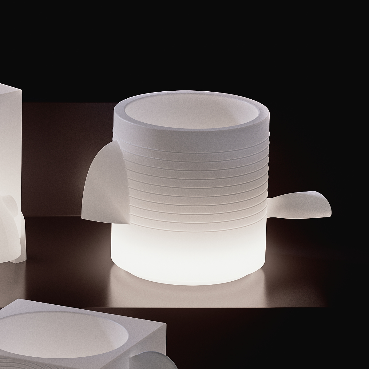 Une collection qui stimule l'imagination et la créativité, transformant les espaces en univers vibrants et énergiques. Conçue pour les audacieux, chaque création prend vie dans un processus de métamorphose continue, donnant naissance à une variété d'objets multifonctionnels alliant ironie et fonctionnalité : vases, meubles de rangement et porte-bouteilles aux couleurs vives, ainsi que des lampes à lumière neutre, capables de créer des atmosphères évocatrices et chaleureuses.