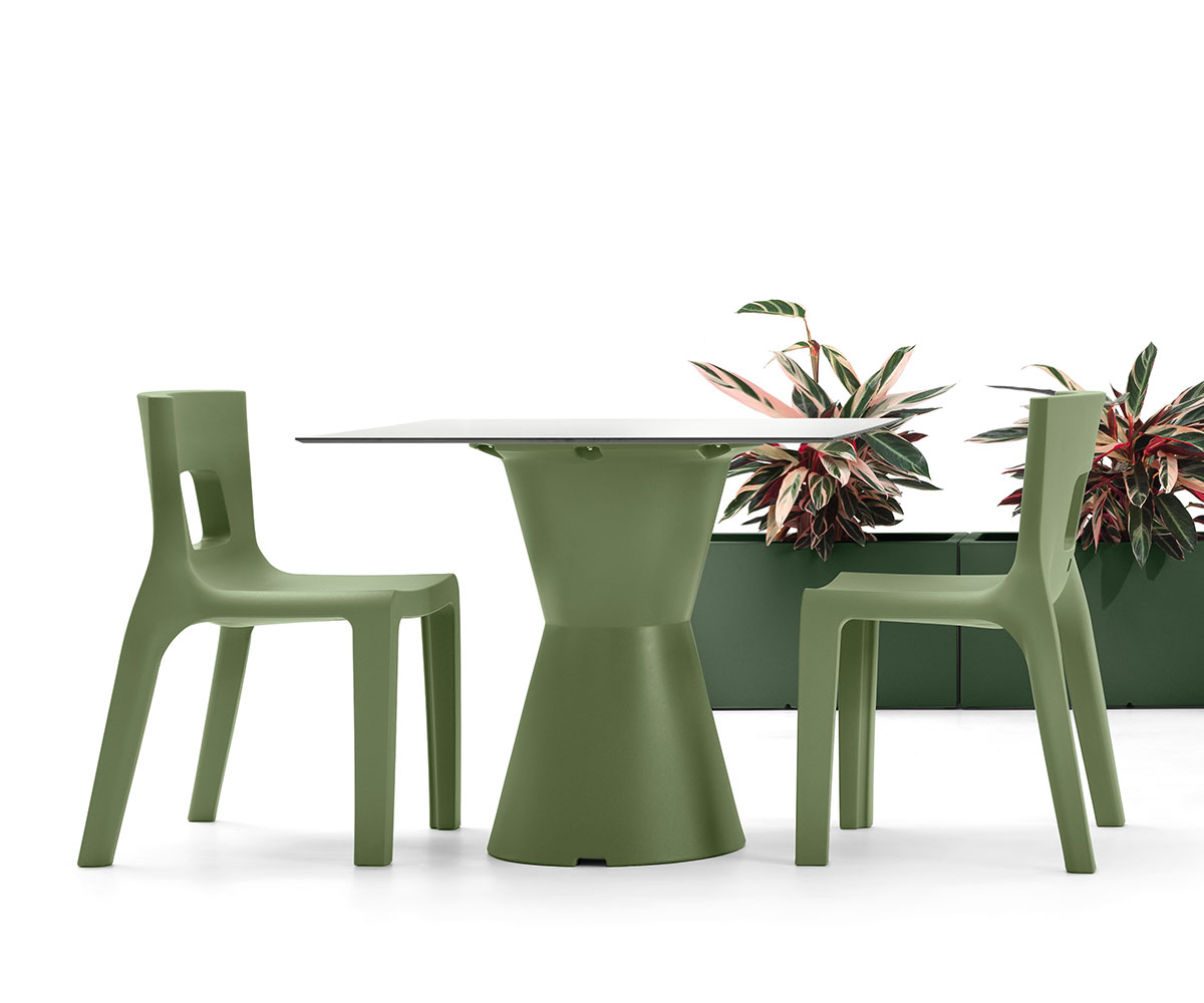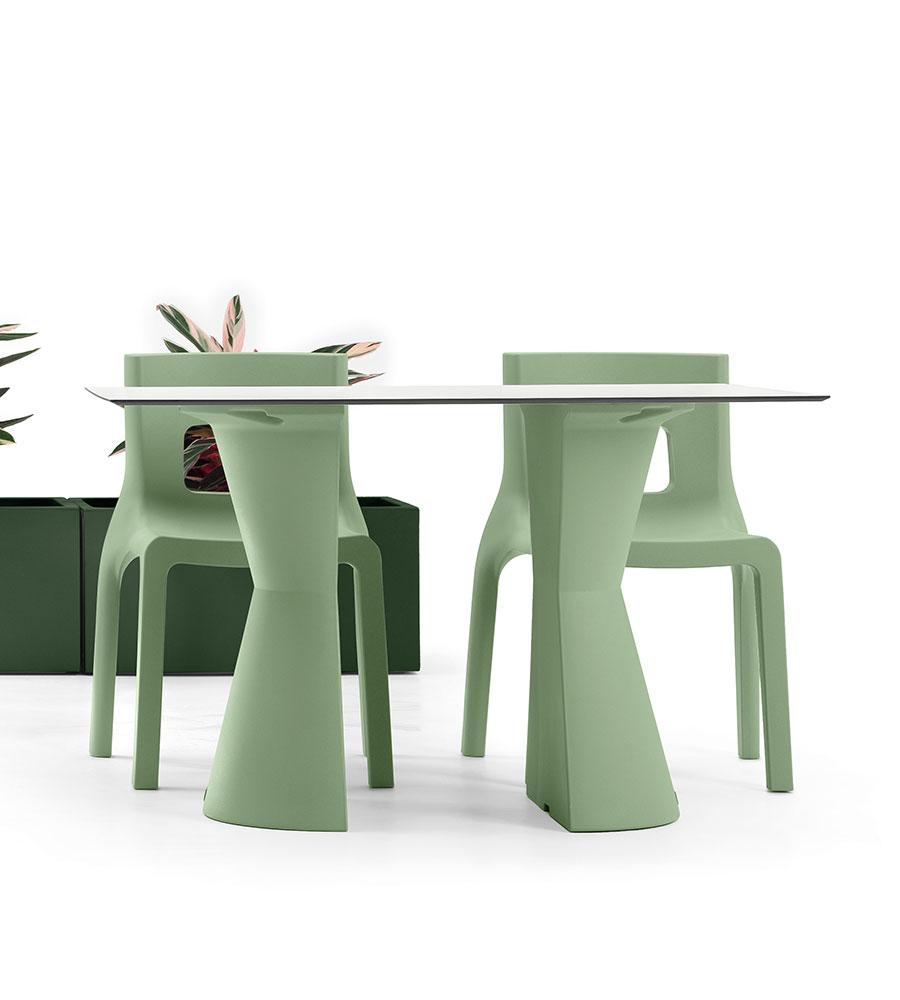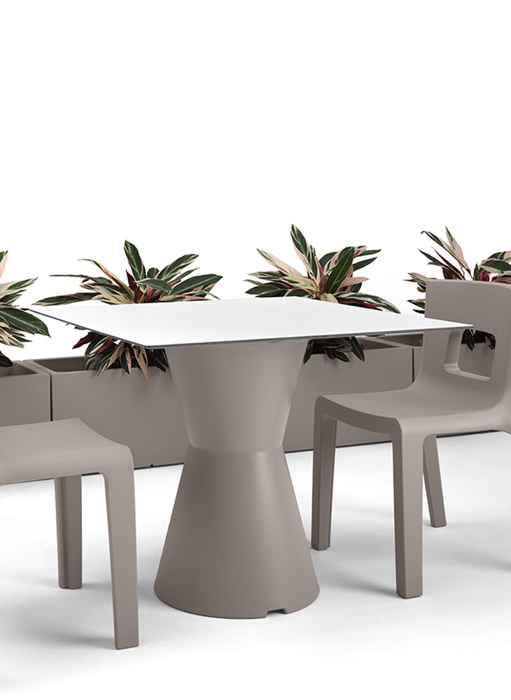 La doppia versione di gamba, da due o quattro posti, i piani in HPL disponibili in più misure e forme e le diverse colorazioni rendono possibili numerose combinazioni di stile e colore, permettendo la massima personalizzazione degli ambienti. La versione con luce è ideale per illuminare gli spazi dehors in maniera originale, senza ricorrere ad ulteriori lampade.